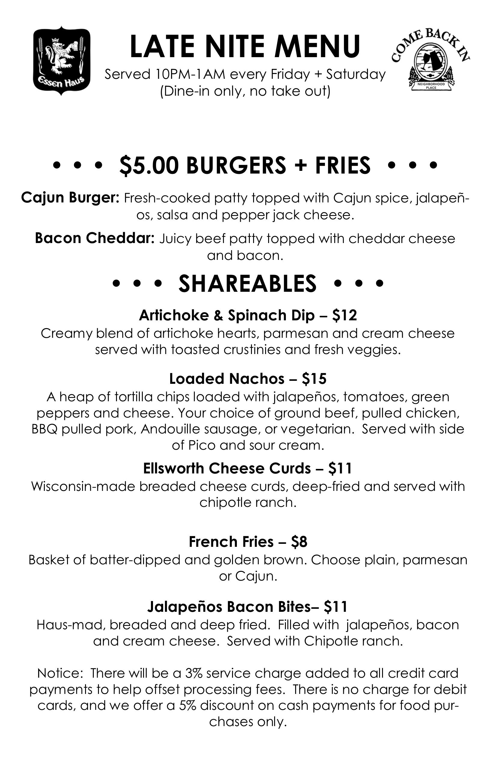SERVED FROM 10PM-1AM FRIDAY & SATURDAY